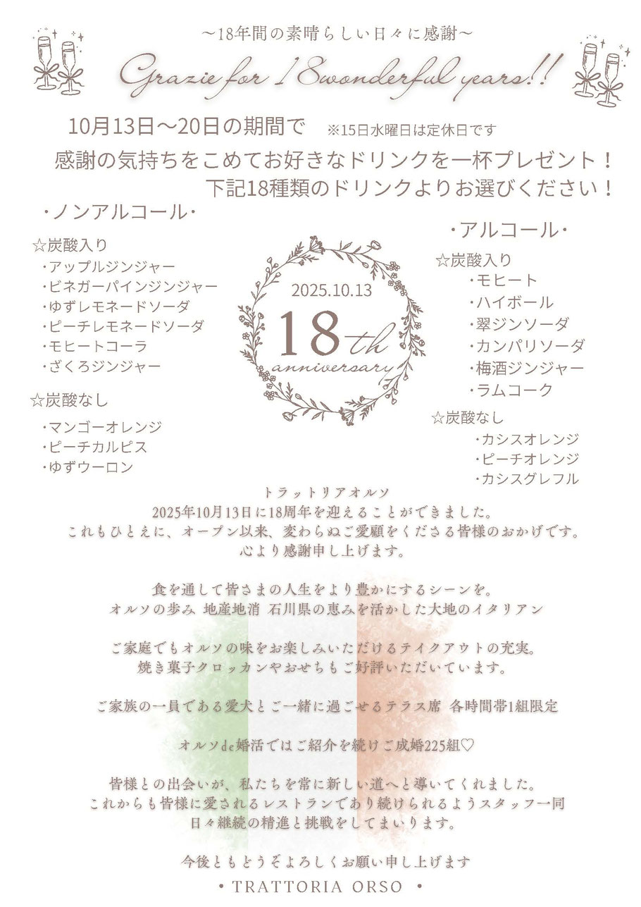 とき: 2025.10.19.SUN 10:00-16:00 ところ: 新竪町商店街 ・ロービー&ポーク丼 ・石窯ピッツァマルゲリータ ・ライスコロッケ ・ティラミス等 たくさんご用意してお待ちしております! ※当日オルソ店舗は通常通りランチ営業しております!